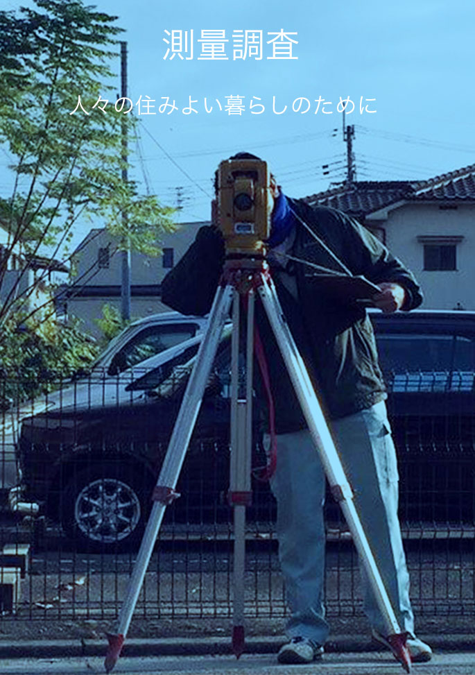 建設工事を行う前の計画を行うために土地の測量を行います。建設工事を行う場所の位置、高低差、距離、面積をトータルステーション・レベル等の測量機械を使って測定します。